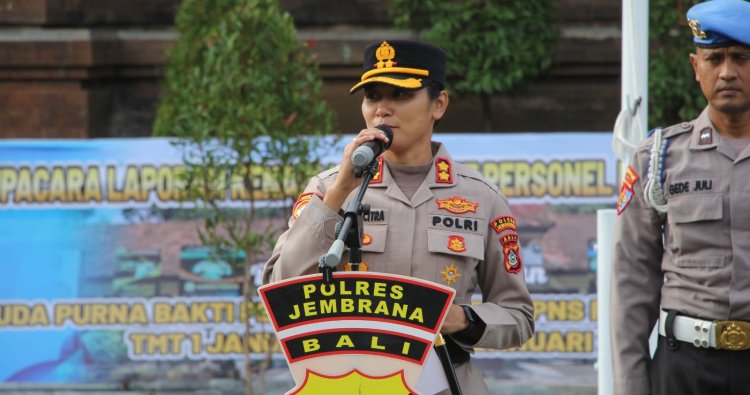 JEMBRANA - Polres Jembrana menggelar Apel Konsolidasi dalam rangka Operasi Lilin Agung 2025 yang berlangsung di halaman Gedung Auditorium Pemkab Jembrana, Selasa (6/1/2026) pagi. Apel tersebut dipimpin langsung Kapolres Jembrana AKBP Kadek Citra Dewi Suparwati, S.H., S.I.K., M.I.K., sebagai bentuk evaluasi akhir sekaligus penguatan soliditas personel pascapengamanan Natal dan Tahun Baru.